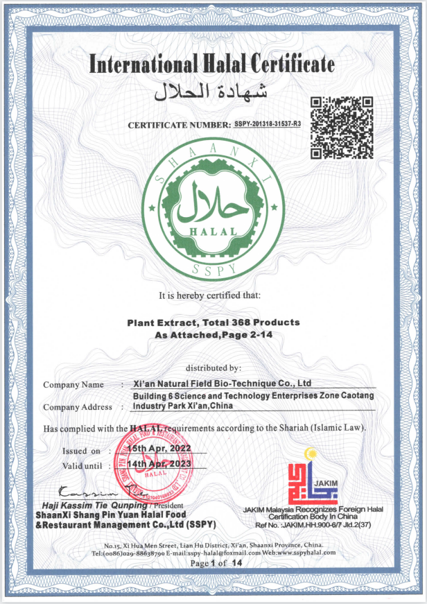 生產基地位于西安科技企業加速器B區草堂工業園。擁有標準化車間,標準提取物、健康食品原料以及化妝品原料的生產線,目前獲得專利10多項,多個產品取得了HACCP、HALAL、ISO9001、KOSHER、歐盟有機證、美國有機證等多項證書。